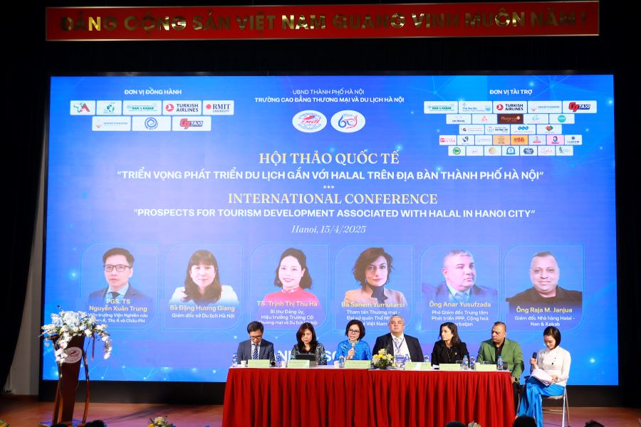 (LĐXH)-Hội thảo quốc tế “Triển vọng phát triển du lịch gắn với Halal trên địa bàn thành phố Hà Nội” diễn ra ngày 15/4/2025, tại Hà Nội. Sự kiện do Trường Cao đẳng Thương mại và Du lịch Hà Nội phối hợp với Viện Nghiên cứu Nam Á, Tây Á và châu Phi (thuộc Viện Hàn lâm Khoa học Xã hội Việt Nam), Đại sứ quán một số quốc gia tại Việt Nam…