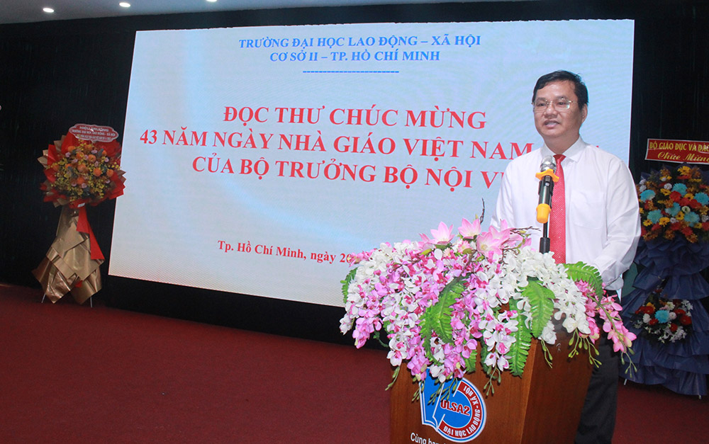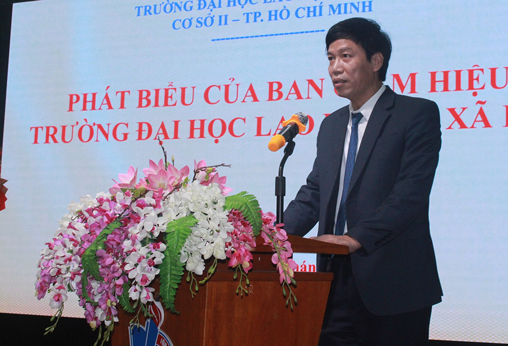 Thay mặt Lãnh đạo Trường Đại học Lao động - Xã hội, TS. Nguyễn Mạnh Cường, Phó Hiệu trưởng Nhà trường phát biểu và ôn lại truyền thống hình thành phát triển của Nhà trường và truyền thống 43 năm ngày Nhà giáo Việt Nam (20/11/1982 -20/11/2025).