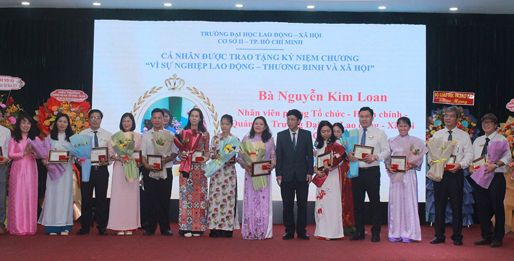 Đặc biệt, trong buổi lễ trang trọng này, chúng ta vui mừng được đón nhận và trao tặng Bằng khen, Kỷ niệm chương Vì sự nghiệp Lao động - Thương binh và Xã hội của Bộ trưởng Bộ Lao động – Thương binh và Xã hội trước đây và Bằng khen của Bộ trưởng Bộ Nội vụ cho các tập thể, cá nhân có thành tích xuất sắc. Đây là sự ghi nhận xứng đáng của Lãnh đạo Bộ, Lãnh đạo Nhà nước đối với những đóng góp bền bỉ, sáng tạo của cán bộ, giảng viên, viên chức và người lao động của Nhà trường.