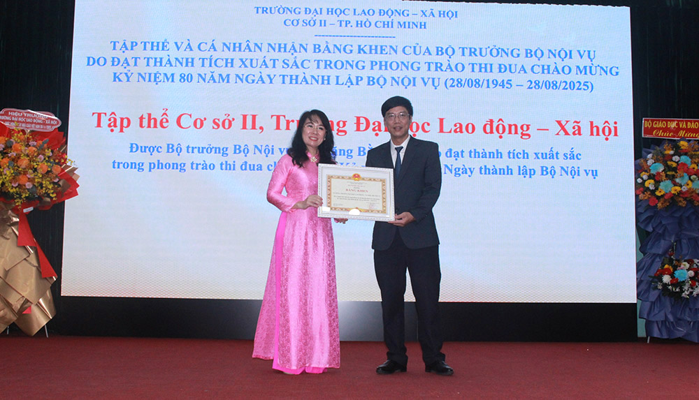 Tập thể Cơ sở II Trường Đại học Lao động - Xã hội nhận Bằng khen của Bộ trưởng Bộ Nội vụ