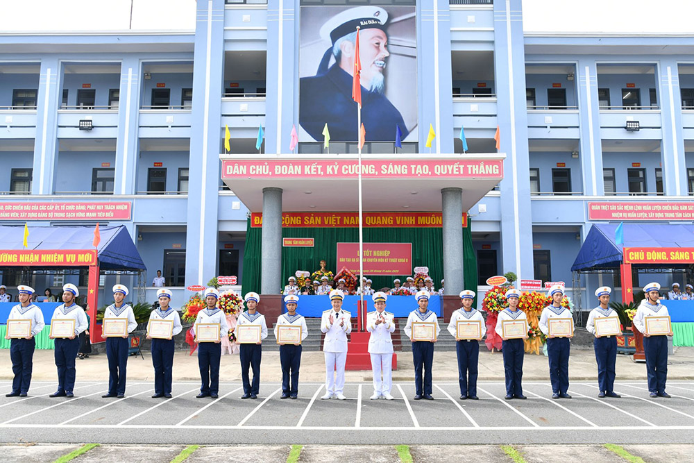 Đến dự và chỉ đạo tại buổi lễ, Thượng tá Phạm Văn Sơn, Phó Tư lệnh, Tham mưu trưởng Vùng 2 Hải quân biểu dương, chúc mừng kết quả mà học viên khóa huấn luyện đạt được. Đồng thời trân trọng cảm ơn các giáo viên, cán bộ quản lý đã luôn nêu cao tinh thần trách nhiệm, khắc phục khó khăn, hoàn thành tốt nhiệm vụ giảng dạy và quản lý học viên trong suốt thời gian qua.