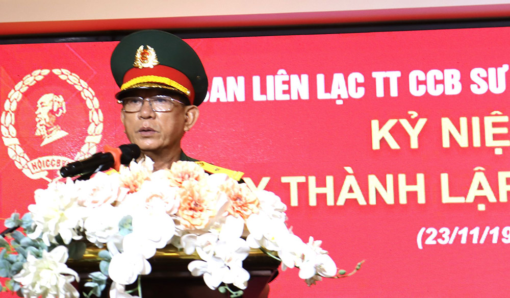 Trưởng ban Liên lạc truyền thống CCB Sư đoàn 341 Đồng Nai Lê Đức Hạnh phát biểu buổi họp mặt