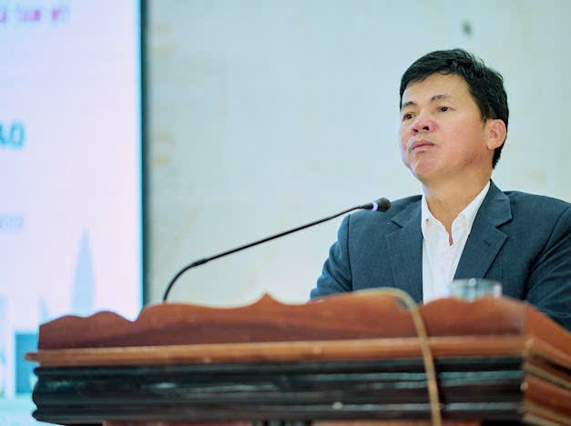 Anh, Bí thư Đảng ủy - Hiệu trường Cao đẳng Quảng Nam phát biểu tại Lễ khai giảng.