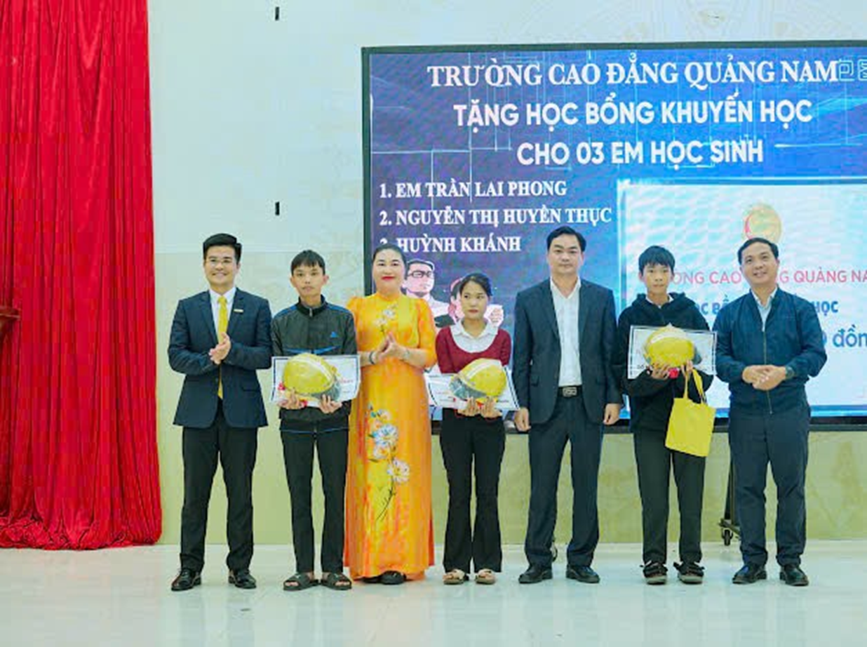 Trong chương trình Khai giảng, Trường Cao đẳng Quảng Nam và Ngân hàng Nam Á đã tổ chức phần trao học bổng hỗ trợ cho các em học sinh vướt khó, viết tiếp ướt mơ trong học tập. Đây là hoạt động mang ý nghĩa nhân văn sâu sắc, thể hiện tinh thần “tương thân tương ái”, sự quan tâm của nhà trường và các mạnh thường quân đối với sự nghiệp giáo dục và tương lai của các em học sinh (Trường Cao đẳng Quảng Nam trao 3 suất học bỗng, mỗi suất 02 triệu đồng và Ngân hàng Nam Á trao 3 áo mưa và 3 mũ báo hiểm; đoàn thanh niên CSHCM nhà trường trao 3 phần vở cho 3 em HSSV)./.