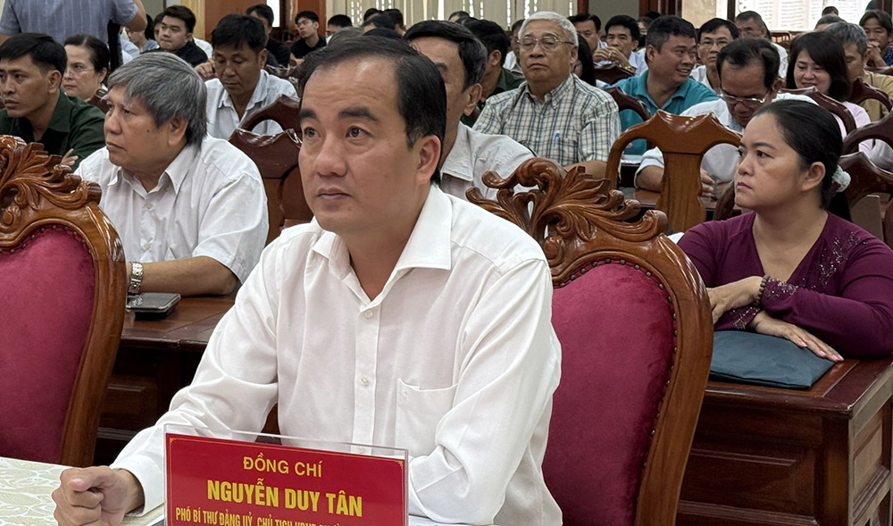 “Việc nhập ngũ lên đường bảo vệ Tổ quốc là một vinh dự lớn lao, một cơ hội để các bạn rèn luyện, trưởng thành và đóng góp vào sự nghiệp xây dựng, bảo vệ vững chắc nền độc lập, chủ quyền của dân tộc. Tôi biểu dương tinh thần xung kích, tình nguyện của các bạn, đặc biệt là các đảng viên, đã thể hiện vai trò tiên phong trong mọi nhiệm vụ, xứng đáng là những người đi đầu trong thực hiện nghĩa vụ thiêng liêng này. Tôi tin tưởng rằng, dù con đường phía trước có những khó khăn, vất vả, nhưng với sức trẻ, lòng nhiệt huyết và ý chí của mình, các bạn sẽ vững bước và hoàn thành xuất sắc mọi nhiệm vụ được giao”- ông Nguyễn Duy Tân khẳng định.