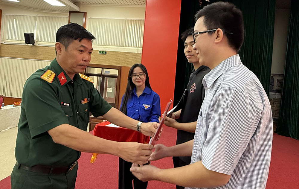 Hội đồng Nghĩa vụ quân sự phường Trấn Biên tặng quà chúc mừng thanh niên gương mẫu viết đơn tình nguyện nhập ngũ