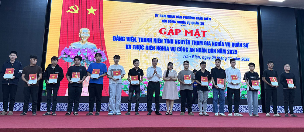 Sáng 29-11, Phó Bí thư Đảng ủy, Chủ tịch UBND, Chủ tịch Hội đồng Nghĩa vụ quân sự (NVQS) phường Trấn Biên, tỉnh Đồng Nai chủ trì buổi gặp mặt đảng viên, thanh niên tình nguyện tham gia NVQS và thực hiện nghĩa vụ Công an nhân dân (CAND) năm 2026.