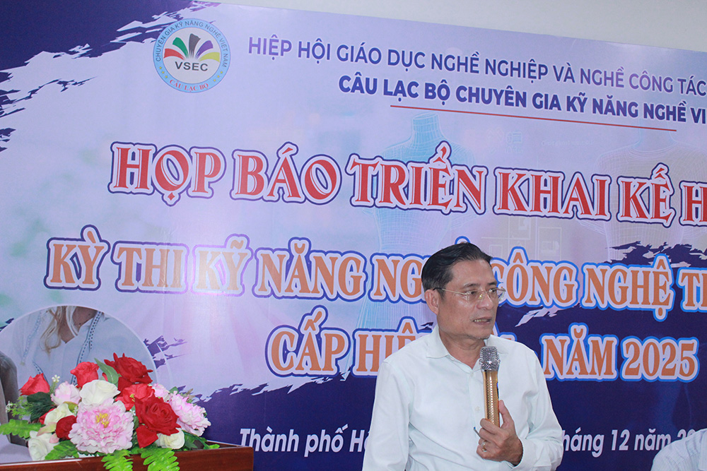 Chiều 5/12 tại TP.HCM, Hiệp hội Giáo dục nghề nghiệp và Nghề công tác xã hội Việt Nam (Hiệp hội GDNN & Nghề CTXH) tổ chức họp báo giới thiệu về Kỳ thi Kỹ năng nghề “Công nghệ Thời trang” năm 2025 và định hướng tuyển chọn thí sinh tham dự kỳ thi Kỹ năng nghề Thế giới 2026 (WorldSkills 2026) tại Thượng Hải (Trung Quốc); Câu lạc bộ (CLB) Chuyên gia kỹ năng nghề Việt Nam được hiệp hội giao nhiệm vụ tổ chức kỳ thi này.