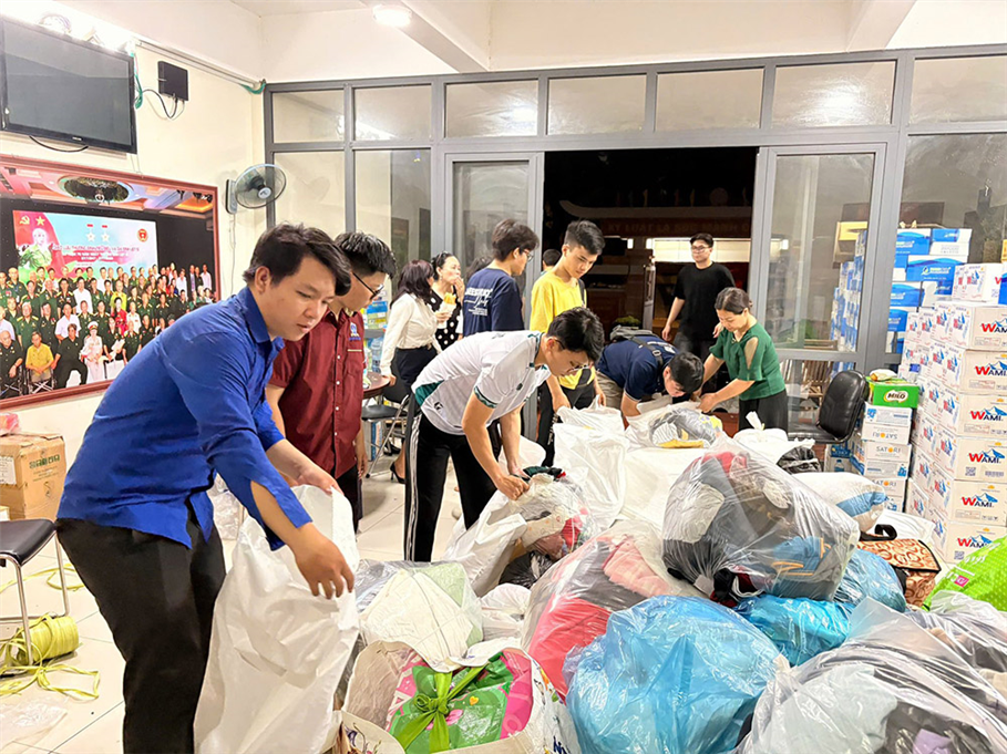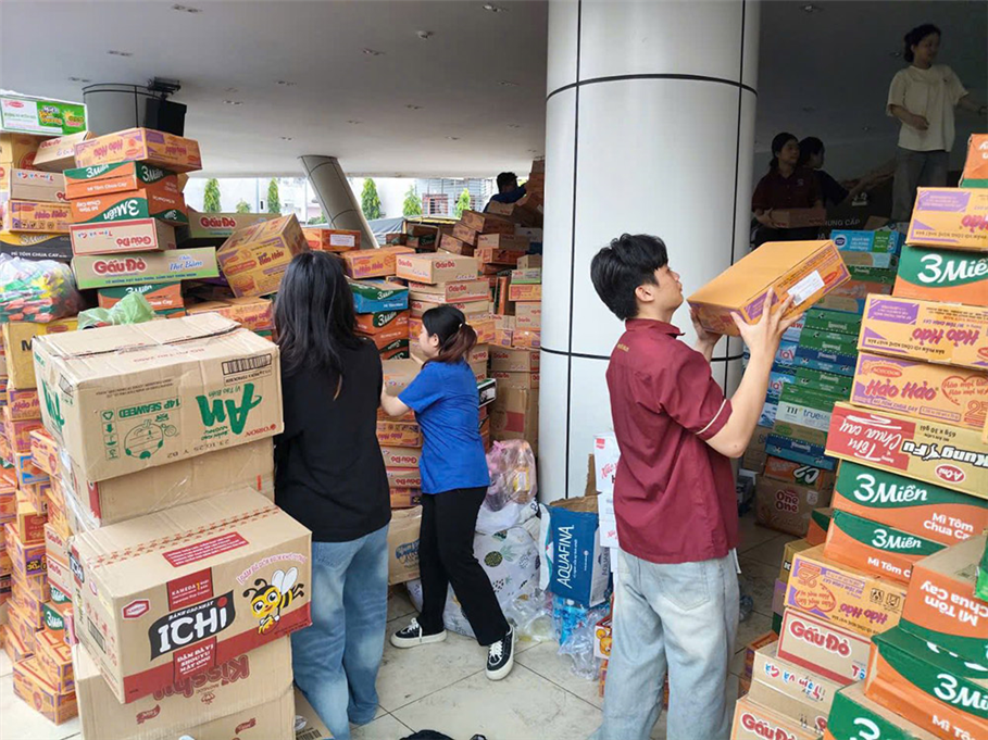 Ngoài hỗ trợ học phí, sinh viên NTTU còn tích cực tham gia phân loại, vận chuyển hàng cứu trợ. Nhiều bạn chia sẻ cảm giác ấm lòng khi góp sức giúp đồng bào khó khăn.