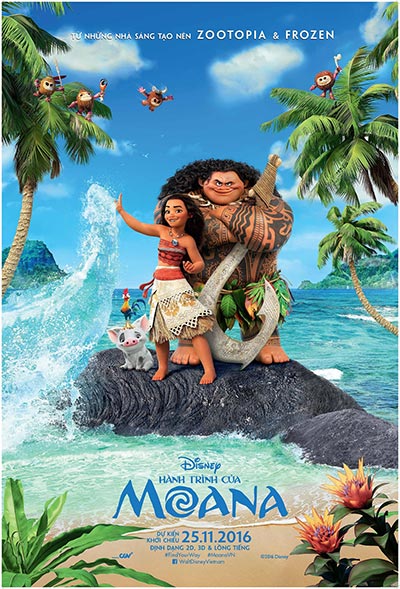 Moana (Hành trình của Moana) ra mắt khán giả vào ngày 25/11 với đầy đủ các phiên bản 2D, 3D và lồng tiếng.