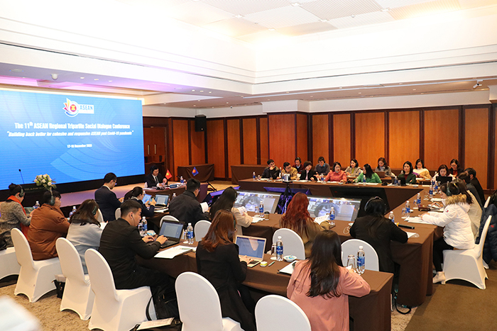 Quang cảnh hội nghị đối thoại trực tuyến tại điểm cầu Hà NộiĐối thoại xã hội ba bên được tổ chức thường niên giữa các đối tác xã hội là một công cụ chính để xây dựng và thực hiện các giải pháp bền vững, từ cấp cộng đồng đến cấp toàn cầu. Mục tiêu của Đối thoại nhằm củng cố các ứng phó của các đối tác xã hội về các vấn đề mới nổi cũng như tăng cường đối thoại xã hội và thúc đẩy một chương trình làm việc phù hợp để hỗ trợ tầm nhìn chung của ASEAN. Đây cũng là diễn đàn trao đổi các thông lệ tốt về các vấn đề lao động trong khu vực.