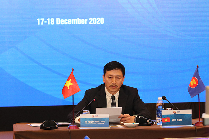 Vụ trưởng Vụ Hợp tác Quốc tế Nguyễn Mạnh Cường phát biểu khai mạcTheo chia sẻ của ông Nguyễn Mạnh Cường, cuộc khủng hoảng Covid-19 đang ảnh hưởng đến hàng triệu công ty trên toàn thế giới dẫn đến phá sản không thể tránh khỏi, đặc biệt là trong các lĩnh vực hàng không, du lịch, khách sạn và bán lẻ. Theo ước tính của ILO, hơn 81% lực lượng lao động toàn cầu hiện đang bị ảnh hưởng bởi tình trạng mất việc làm toàn bộ hoặc một phần. Thông qua các nội dung trao đổi tại Đối thoại, ông Nguyễn Mạnh Cường hy vọng các đại biểu tham dự sẽ có có hội hiểu biết hơn về tình hình đại dịch Covid-19 cũng như các nỗ lực của các nước trong việc hỗ trợ người lao động di cư trong bối cảnh đại dịch, đồng thời sớm thống nhất về các khuyến nghị ở cấp khu vực của Đối thoại.