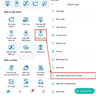 BHXH Việt Nam hướng dẫn người dân cách đóng tiếp tiền tham gia BHXH tự nguyện, đóng tiền gia hạn thẻ BHYT hộ gia đình trên ứng dụng trực tuyến của 03 ngân hàng này như sau: