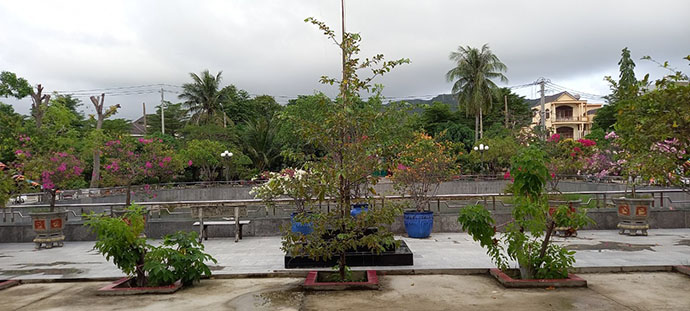 Những chậu cây hoa giấy được trồng cạnh các loại cây xanh khác dọc lối đi, quanh khuôn viên Trung tâm Điều dưỡng Thương binh và Người có công Long Đất dịp này đang đua nhau khoe sắc