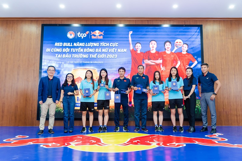 (LĐXH)- Ngày 27/6/2023, tại Hà Nội, Nhãn hàng Red Bull thuộc sở hữu của Công ty TCP Việt Nam - Nhà Tài trợ Hàng đầu của các Đội tuyển Bóng đá Quốc gia Việt Nam đã phối hợp với Liên đoàn Bóng đá Việt Nam tổ chức sự kiện “Red Bull - Năng lượng Tích cực đi cùng Đội tuyển Bóng đá Nữ Việt Nam tại Đấu trường Thế giới 2023”.