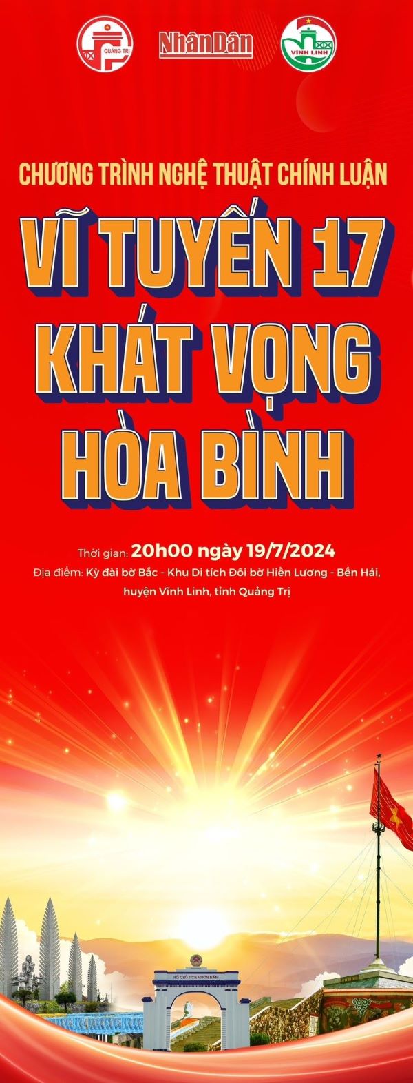 (LĐXH)-Nhân kỷ niệm 70 năm Hiệp định Giơ-ne-vơ 21/7 (1954 - 2024) và 70 năm truyền thống Vĩnh Linh 25/8 (1954 - 2024), vào lúc 20 giờ ngày 19/7/2024 tới, tại Khu di tích quốc gia đặc biệt Đôi bờ Hiền Lương - Bến Hải, Báo Nhân Dân phối hợp với tỉnh Quảng Trị cùng các cơ quan liên quan tổ chức Chương trình nghệ thuật đặc biệt “Vĩ tuyến 17 - Khát vọng hòa bình”.