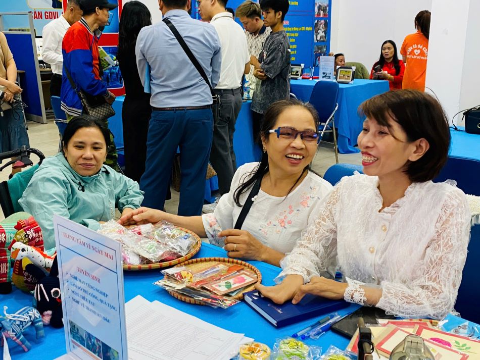 Ban tổ chức tặng quà các doanh nghiệp tham gia tuyển dụng lao động là người khuyết tậtTổng hợp nhu cầu tuyển dụng, tuyển sinh lao động là người khuyết tật của các doanh nghiệp tham gia phiên Giao dịch việc làm này cho thấy, đến tham gia phiên này có 14 doanh nghiệp tham gia tuyển dụng, tuyển sinh lao động là người khuyết tật. Đó là Công ty cổ phần Thương mại đầu tư sản xuất Trường An, Hợp tác xã Trái Tim Hồng, Công ty cổ phần May Nông nghiệp, Trung tâm Vì ngày mai, Công ty TNHH Thêu tranh ảnh cao cấp Hoàng Thị Khương, Hợp tác xã Vụn Art, Công ty TNHH Xã hội 3/12,… cùng các chỉ tiêu phù hợp và mức lương thỏa đáng: nghề may, thủ công mỹ nghệ, nhân viên kinh doanh, thợ thêu tranh, thợ may công nghiệp…