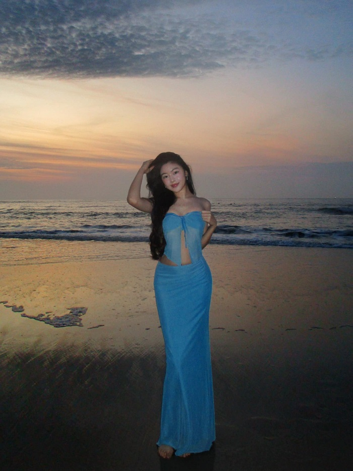 Dịp đầu năm mới, Lọ Lem tung loạt ảnh tạo dáng đón bình minh trên biển. Lọ Lem trang điểm nhẹ nhàng nhưng bộ đồ gợi cảm giúp con gái MC quốc dân thu hút sự chú ý từ cộng đồng mạng.