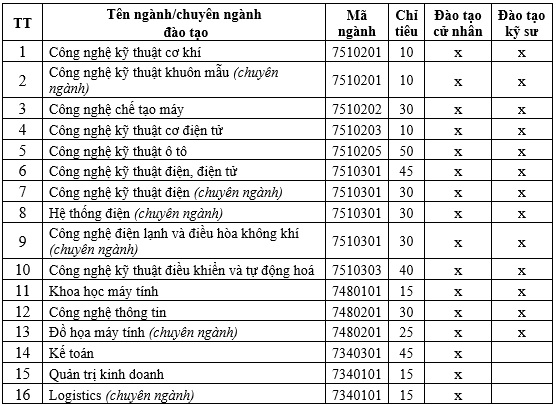 Tất cả các ngành đào tạo áp dụng 3 phương thức xét tuyển sau: