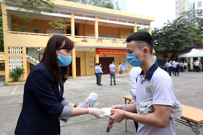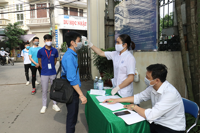 Giáo viên Trường Cao đẳng nghề Công nghiệp Hà Nội phát khẩu trang cho sinh viên khi quay trở lại học tậpTrước khi học sinh, sinh viên lên lớp học phải chấp hành đo kiểm tra thân nhiệt tại cổng cơ sở đào tạo của nhà trường. Các lớp học chịu sự hướng dẫn của giáo viên chủ nhiệm tổ chức tuyên truyền về phòng chống dịch bệnh do Covid-19 gây ra thông qua các hình thức phát thanh, hướng dẫn trực tiếp hoặc chiếu video/clip tại lớp; tổ chức dọn vệ sinh công nghiệp các phòng học, xưởng thực hành… vào đầu giờ buổi học và cuối buổi học. Học sinh, sinh viên nào có biểu hiện sốt, ho phải báo cáo ngay Ban Giám hiệu nhà trường.