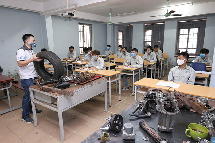 Giờ học về Công nghệ ô tô tại Trường Cao đẳng nghề công nghiệp Hà Nội ngay trong sáng 4/5/2020Để chuẩn bị cho việc nhập học trở lại của học sinh, sinh viên, các cơ sở giáo dục nghề nghiệp trên địa bàn thành phố Hà Nội đều thực hiện tốt các biện pháp đảm bảo an toàn, phương án giảm thiểu rủi ro lây nhiễm dịch bệnh Covid-19 trong trường học. Đồng thời, thực hiện tiêu độc, khử trùng toàn bộ khuôn viên, phòng học, phòng làm việc theo hướng dẫn của ngành Y tế; bố trí đầy đủ các bình dung dịch khử khuẩn ở các phòng học, phòng làm việc, xưởng thực hành, nhà vệ sinh. Xây dựng phòng cách ly và phương án sử dụng phòng cách ly trong trường hợp phát hiện học sinh, sinh viên có biểu hiện của bệnh cũng như kịch bản chi tiết để xử lý các tình huống phát hiện học sinh, sinh viên có biểu hiện của bệnh; thực hiện khai báo y tế theo hướng dẫn của ngành Y tế đối với tất cả cán bộ, nhà giáo, người lao động, học sinh, sinh viên…
