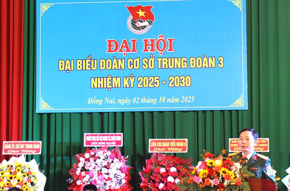 Phát biểu chỉ đạo đại hội, Thượng tá Lê Văn Hiệp, Bí thư Đảng ủy, Chính ủy Trung đoàn 3 biểu dương thành tích kết quả mà Đoàn cơ sở và Phong trào thanh niên đơn vị thời gian qua. Bí thư Đảng ủy Trung đoàn 3 nhấn mạnh: Nhiệm kỳ mới cùng yêu cầu xây dựng quân đội cách mạng, chính quy, tinh nhuệ, hiện đại, nhiệm vụ xây dựng trung đoàn vững mạnh toàn diện, “mẫu mực tiêu biểu” đặt ra ngày càng cao, yêu cầu của cuộc cách mạng chuyển đổi số đòi hỏi Công tác Đoàn và Phong trào thanh niên của trung đoàn tiếp tục đổi mới nội dung, phương thức hoạt động; phát huy sức trẻ, trí tuệ, tinh thần xung kích, sáng tạo của tuổi trẻ, đóng góp tích cực vào thực hiện nhiệm vụ chung của đơn vị.