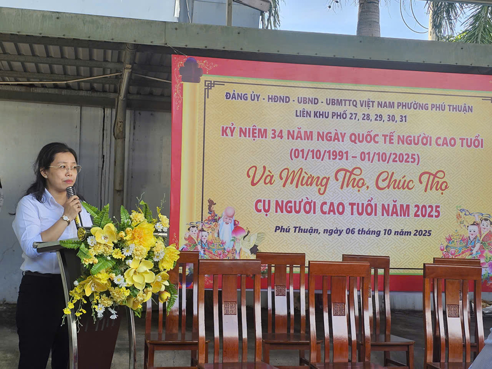 Nhân kỷ niệm 34 năm Ngày Quốc tế Người cao tuổi (01/10/1991 – 01/10/2025), sáng 6/10/2025, Đảng ủy – HĐND – UBND – Ủy ban MTTQ Việt Nam phường Phú Thuận, TP.Hồ Chí Minh đã long trọng tổ chức họp mặt chúc thọ, mừng thọ 53 cụ ông, cụ bà tại 5 khu phố (từ khu phố 27 đến 31). Theo kế hoạch, trong năm 2025, toàn phường sẽ có 336 người cao tuổi được tổ chức chúc thọ, mừng thọ.