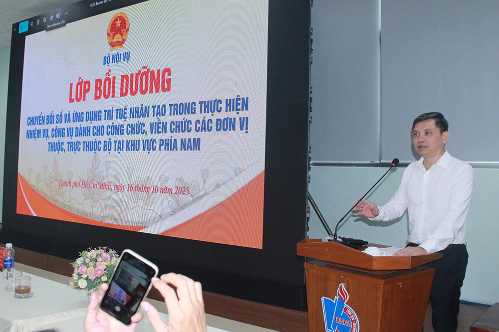 Phát biểu tại lễ khai mạc, đồng chí Lê Đạt, Phó Vụ trưởng Vụ Tổ chức cán bộ (Bộ Nội vụ), cho biết: Thực hiện Quyết định của Bộ trưởng về mở lớp bồi dưỡng chuyển đổi số và ứng dụng trí tuệ nhân tạo (AI) trong hoạt động thực thi công vụ cho công chức, viên chức các đơn vị thuộc Bộ, Bộ Nội vụ tổ chức lớp bồi dưỡng dành cho công chức, viên chức của 9 đơn vị trực thuộc Bộ Nội vụ khu vực phía Nam.