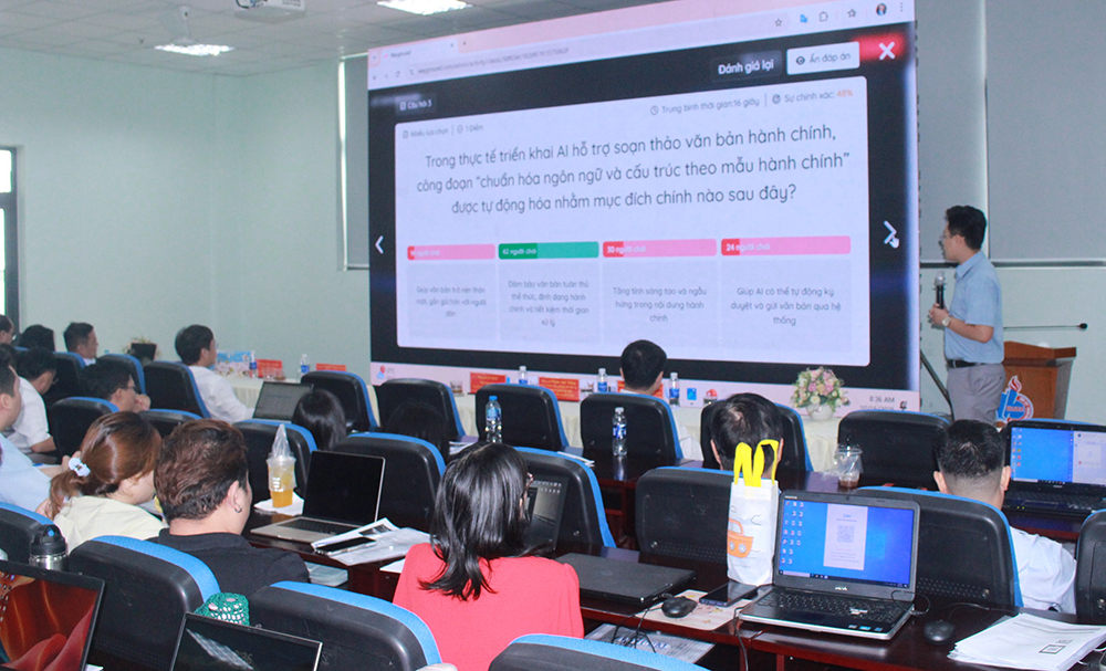 Ông Đạt cho biết, chương trình bồi dưỡng tập trung vào các nội dung thiết thực như: Tư duy và nhận thức về chuyển đổi số, kỹ năng quản lý dữ liệu, sử dụng nền tảng số ứng dụng trí tuệ nhân tạo trong quản lý và điều hành, cùng các vấn đề về an toàn, bảo mật thông tin và đạo đức khi sử dụng trí tuệ nhân tạo.