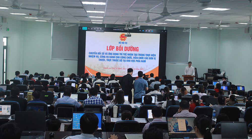 Sáng 16/10, tại Cơ sở II - Trường Đại học Lao động - Xã hội ở (TP.HCM), Bộ Nội vụ tổ chức khai mạc lớp bồi dưỡng chuyển đổi số và ứng dựng trí tuệ nhân tạo AI cho công chức, viên chức của 9 đơn vị thuộc Bộ Nội vụ khu vực phía Nam.