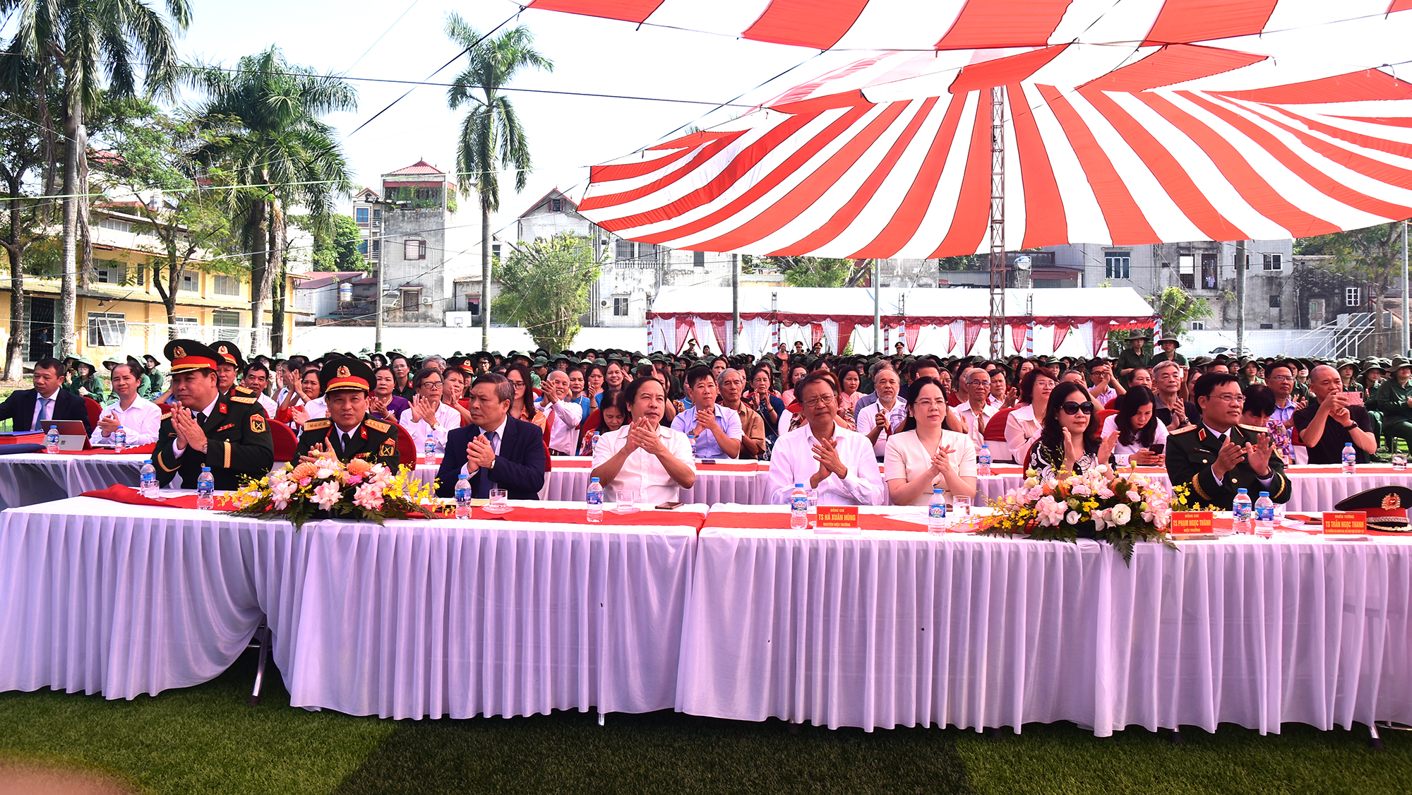 Buổi lễ diễn ra trong không khí trang trọng, có sự tham dự của đồng chí Nguyễn Huy Hưng - Phó Bí thư chuyên trách, Trưởng Ban Tuyên giáo và Dân vận Đảng ủy Bộ Nội vụ; Thiếu tướng, Tiến sĩ Trần Ngọc Thanh - Vụ trưởng Vụ GDQP&AN (Bộ Giáo dục và Đào tạo) - thành viên Hội đồng GDQP&AN Trung ương; Về phía lãnh đạo Trường Đại học Lao động - Xã hội có PGS. TS Lê Thanh Hà, Bí thư Đảng ủy, Chủ tịch Hội đồng Trường; TS Phạm Ngọc Thành, Phó Bí thư Đảng ủy, Hiệu trưởng; ThS Nguyễn Hải Thanh, Phó Giám đốc Trung tâm GDQP&AN cùng đại diện Cục Dân quân Tự vệ - Bộ Quốc phòng, các đơn vị chức năng của Bộ Nội vụ, Bộ GD&ĐT, Bộ Quốc phòng, lãnh đạo TP Hà Nội, Bộ Tư lệnh Thủ đô, các trường đại học, cơ quan, đơn vị đối tác và đông đảo cán bộ, giảng viên, sinh viên của nhà trường.