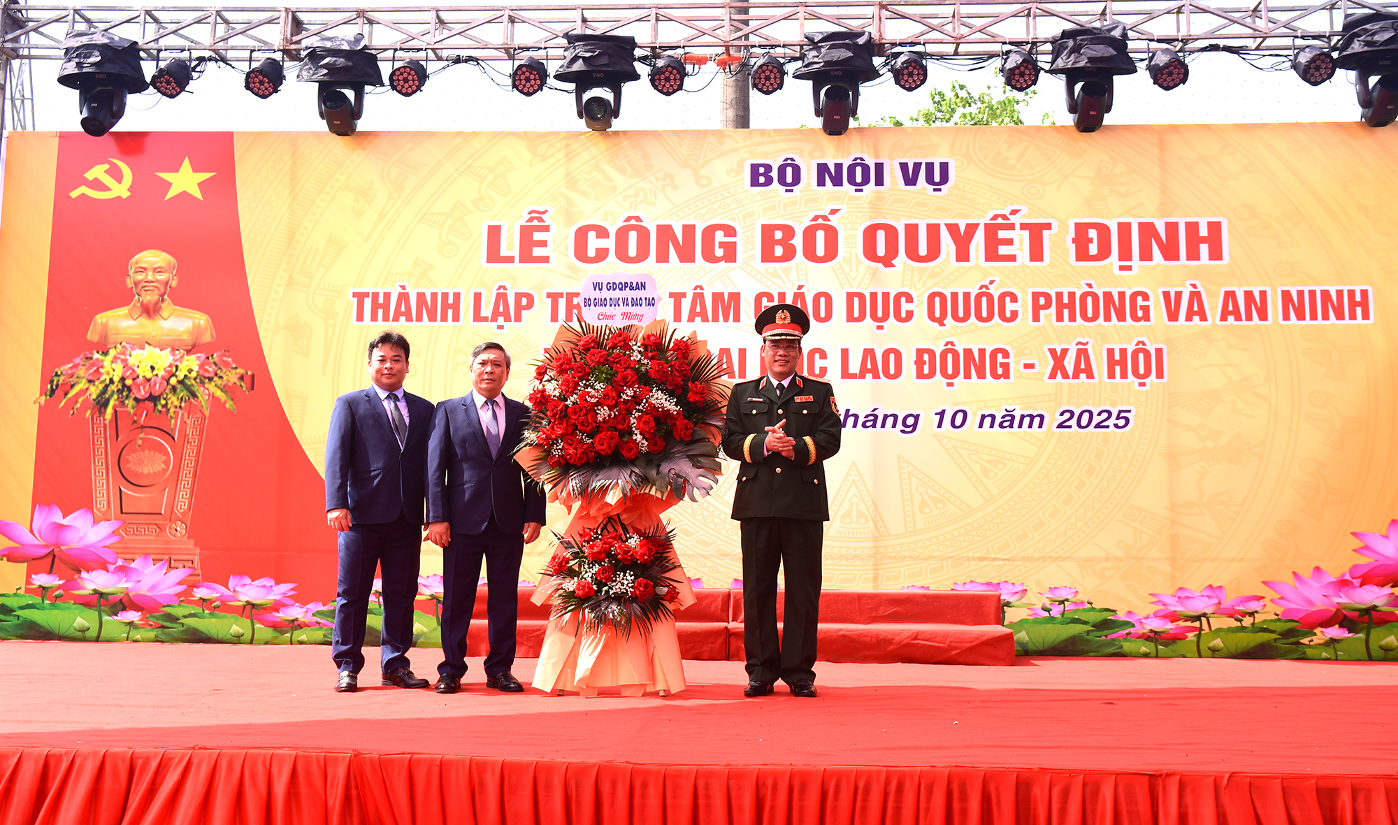 Sáng ngày 17/10/2025, tại Hà Nội, Trường Đại học Lao động - Xã hội long trọng tổ chức Lễ công bố Quyết định thành lập Trung tâm Giáo dục Quốc phòng và An ninh (GDQP&AN) - một sự kiện quan trọng, đánh dấu bước phát triển mới của nhà trường trong việc hoàn thiện cơ cấu tổ chức, nâng cao chất lượng giáo dục toàn diện cho sinh viên về tri thức, bản lĩnh, ý thức trách nhiệm và tinh thần sẵn sàng bảo vệ Tổ quốc Việt Nam xã hội chủ nghĩa.