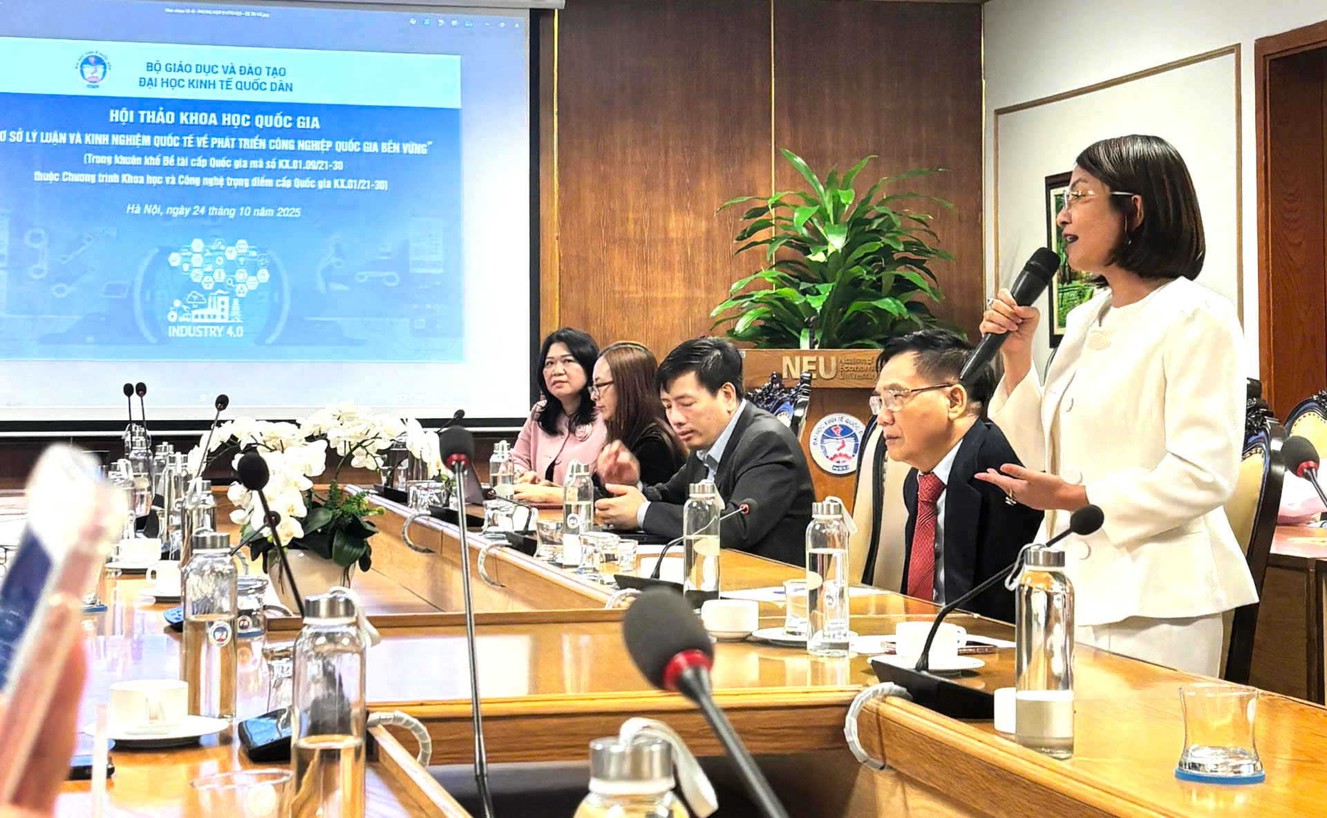 Trong bối cảnh thế giới đang đối mặt với những thách thức to lớn về biến đổi khí hậu, cạn kiệt tài nguyên và yêu cầu cấp thiết về chuyển đổi mô hình tăng trưởng, phát triển công nghiệp bền vững đã trở thành con đường tất yếu cho mọi quốc gia. Nhận thức sâu sắc tầm quan trọng của vấn đề này, sáng ngày 24/10/2025, Đại học Kinh tế Quốc dân đã tổ chức Hội thảo Khoa học Quốc gia với chủ đề “Nghiên cứu cơ sở khoa học và đề xuất giải pháp phát triển công nghiệp quốc gia bền vững đến năm 2030, tầm nhìn đến năm 2045”. Sự kiện là một diễn đàn học thuật uy tín, quy tụ đông đảo các nhà khoa học, nhà quản lý, chuyên gia và doanh nghiệp.
