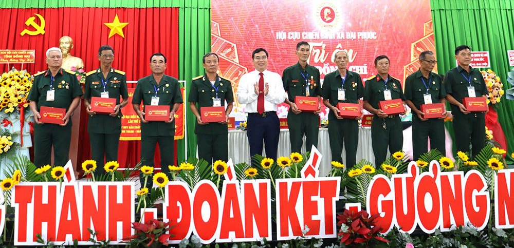 Ghi nhận những kết quả đạt được của CCB xã giai đoạn 2022-2025, Bí thư Đảng ủy, Chủ tịch HĐND xã Đại Phước Nguyễn Thế Phong đề nghị, thời gian tới, cán bộ, hội viên CCB xã tiếp tục đoàn kết, nỗ lực vượt khó, phát huy bản chất “Bộ đội Cụ Hồ”, xây dựng Hội trong sạch vững mạnh, hoàn thành tốt các mục tiêu, nghị quyết nhiệm kỳ, góp phần thực hiện thắng lợi nghị quyết đại hội Đảng các cấp nhiệm kỳ 2025-2030. Thay mặt Thường vụ Đảng ủy xã, đồng chí Nguyễn Thế Phong trao tặng Đại hội bức trướng có nội dung: “Phát huy bản chất truyền thống “Bộ đội Cụ Hồ”, trung thành, đoàn kết, gương mẫu, đổi mới”.