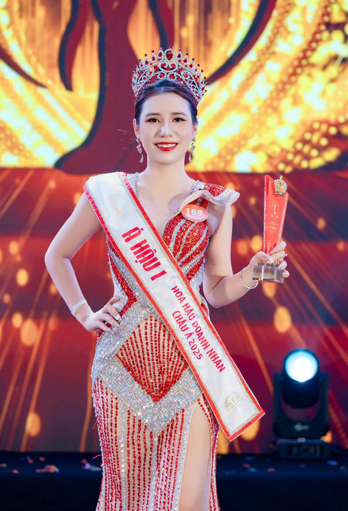 Tối ngày 31/10/2025, tại Trung tâm Hội nghị tỉnh Gia Lai (phường Quy Nhơn, tỉnh Gia Lai), Đêm Chung kết Hoa hậu Doanh nhân Châu Á 2025 chính thức khép lại trong tiếng reo hò rộn ràng và không khí hân hoan của hàng nghìn khán giả. Ngôi vị Á hậu 1 đã được xướng tên dành cho thí sinh Đinh Thị Hiệp (SBD 168) đến từ TP. Đà Nẵng. Không chỉ dừng lại ở đó, cô còn xuất sắc chinh phục giải thưởng phụ Người đẹp Hình thể, khẳng định nét đẹp khỏe khoắn, tự tin và bản lĩnh của người phụ nữ hiện đại.