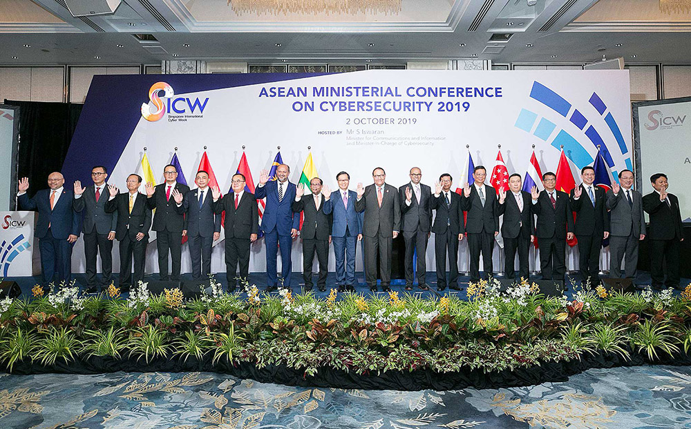 Lãnh đạo các nước thành viên tham dự Hội nghị Bộ trưởng về An ninh không gian mạng ASEAN (AMCC) lần thứ tư tại Singapore, ngày 2/10/2019. Ảnh: csa.gov.sg