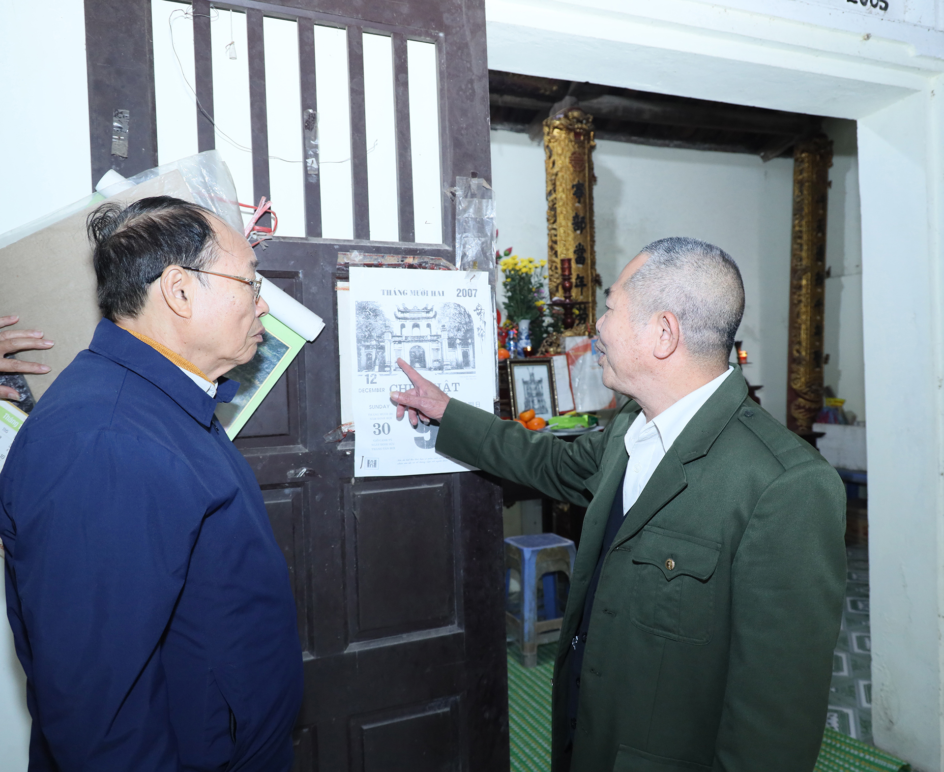 Ông Đào Công Bảo (bên phải) nói về miếu thờ thành hoàng Đại tướng Trấn Quốc ngày xưa.
