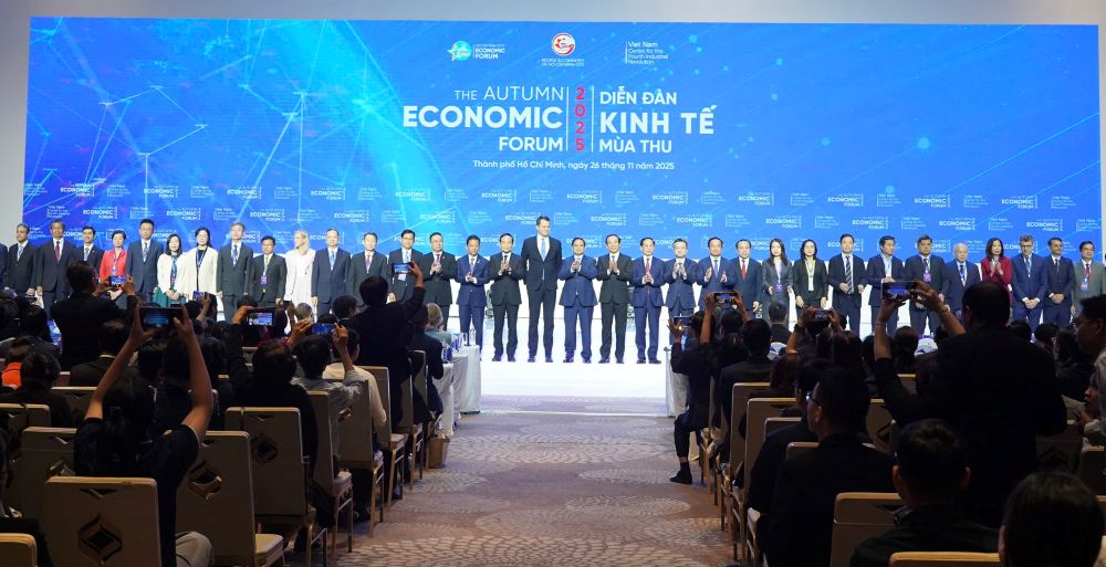 Sáng 26-11, Diễn đàn Kinh tế Mùa Thu 2025 với chủ đề “Chuyển đổi xanh trong kỷ nguyên số” chính thức khai mạc tại Trung tâm Hội nghị Thisky Hall (Khu đô thị Sala, TP Hồ Chí Minh) với Phiên khai mạc và Phiên toàn thể.