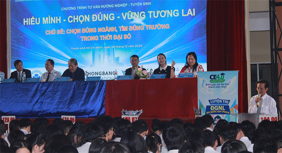 Sáng 8/12/ 2025, Hội Giáo dục nghề nghiệp (GDNN) TP.HCM, phối hợp với các trường cao đẳng, đại học tổ chức Chương trình tư vấn hướng nghiệp – tuyển sinh “Hiểu minh – Chọn đúng – Vững tương lai” năm học 2025 – 2026 tại Trường THPT Phan Đăng Lựu (Phường Bình Lợi Trung, TP.HCM).