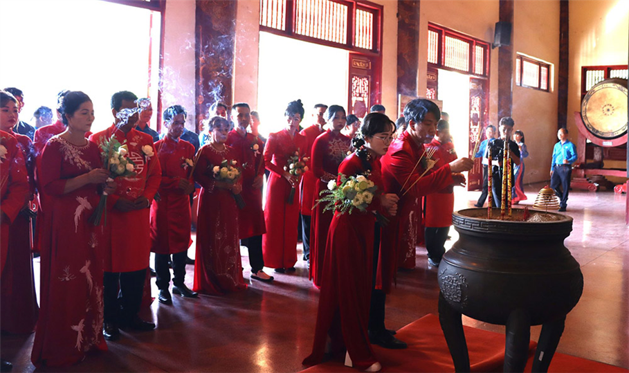 Các cặp đôi dâng hương tại Văn miếu Trấn Biên