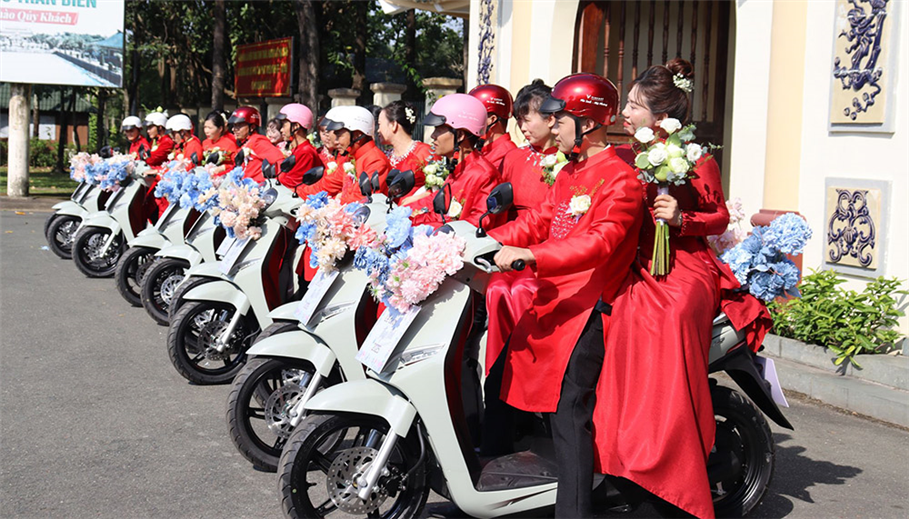 Sáng 14-12, tại Khu Di tích Quốc gia Văn miếu Trấn Biên, tỉnh Đồng Nai, Liên đoàn Lao động tỉnh đã tổ chức Lễ cưới tập thể cho đoàn viên, người lao động tỉnh Đồng Nai năm 2025.