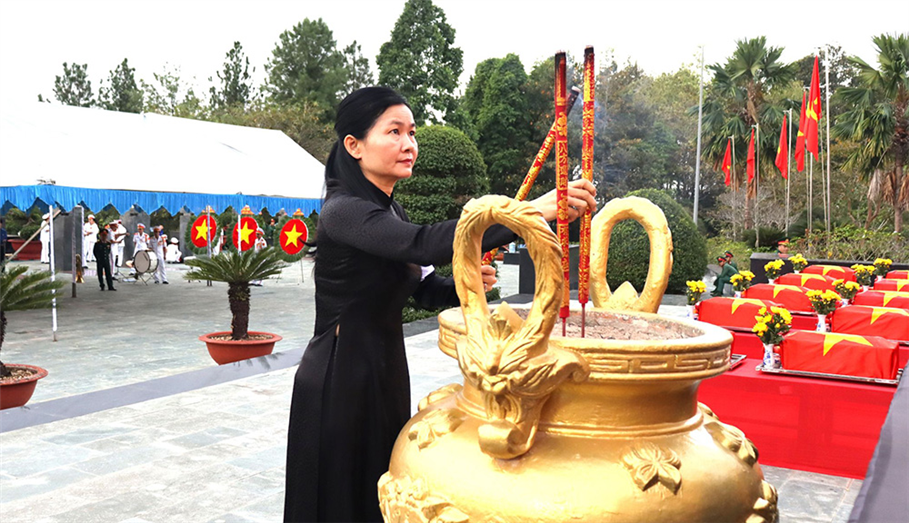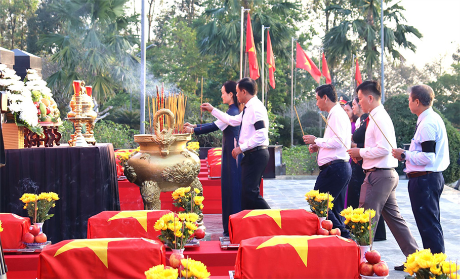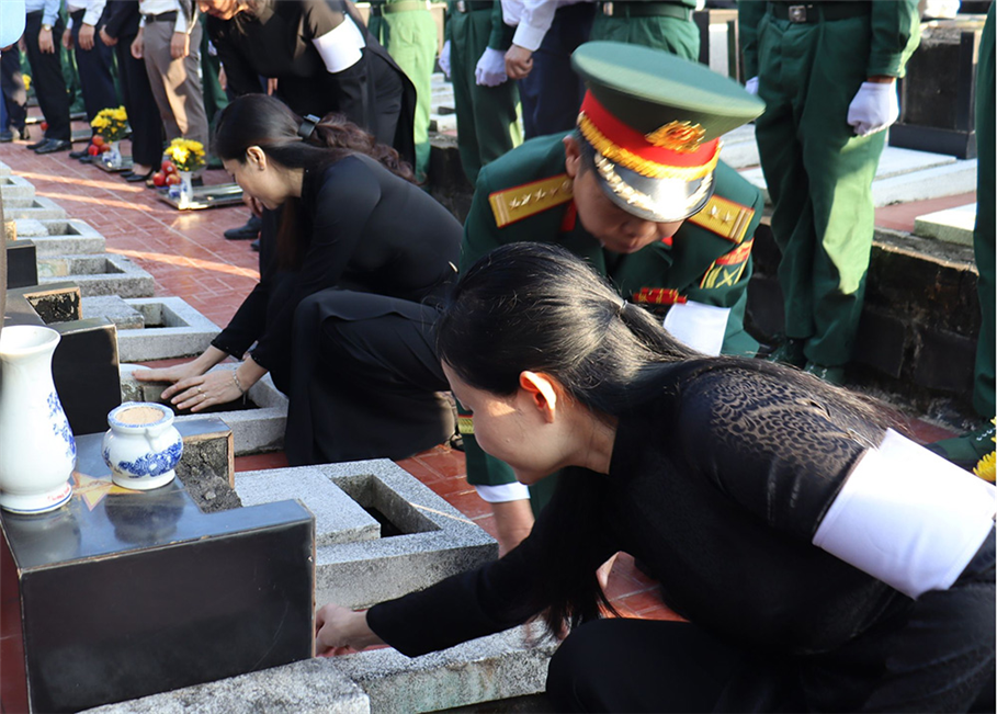Đại biểu thực hiện nghi thức an táng hài cốt liệt sĩ
