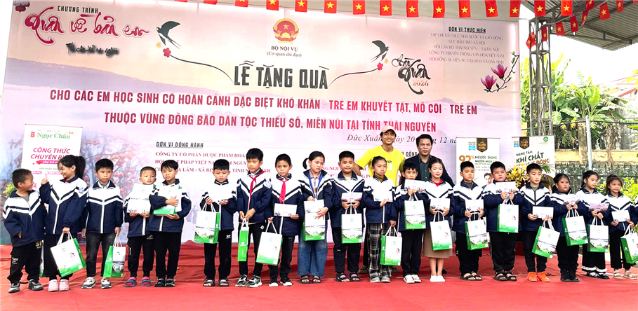 Trong không khí hân hoan chào đón năm mới 2026, hành trình của lòng nhân ái và sự sẻ chia lại tiếp nối qua Chương trình “Xuân về bản em” với chủ đề “Tết cho trẻ em nghèo”. Vượt qua giá lạnh của mùa đông vùng cao, chương trình đã mang hơi ấm của tình người đến với các em nhỏ có hoàn cảnh đặc biệt tại tỉnh Thái Nguyên, thắp lên ngọn lửa hy vọng về một năm mới đủ đầy và một tương lai tươi sáng hơn.