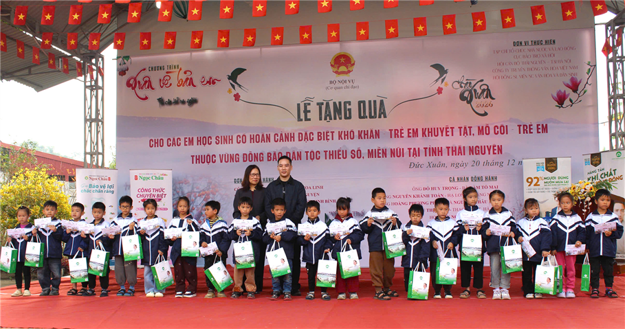 Đây là hoạt động nằm trong khuôn khổ Chương trình thường niên “Xuân về bản em”, chủ đề “Tết cho trẻ em nghèo” do Tạp chí Tổ chức Nhà nước và Lao động (Bộ Nội vụ) chủ trì, phối hợp với Cục Bảo trợ xã hội (Bộ Y tế), Hội cán bộ Thái Nguyên tại Hà Nội, Công ty Cổ phần Phát triển Truyền thông Văn hóa Việt Nam cùng nhiều cơ quan, doanh nghiệp và các nhà hảo tâm trên cả nước chung tay thực hiện.
