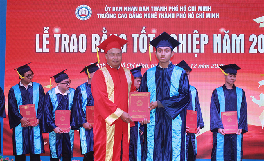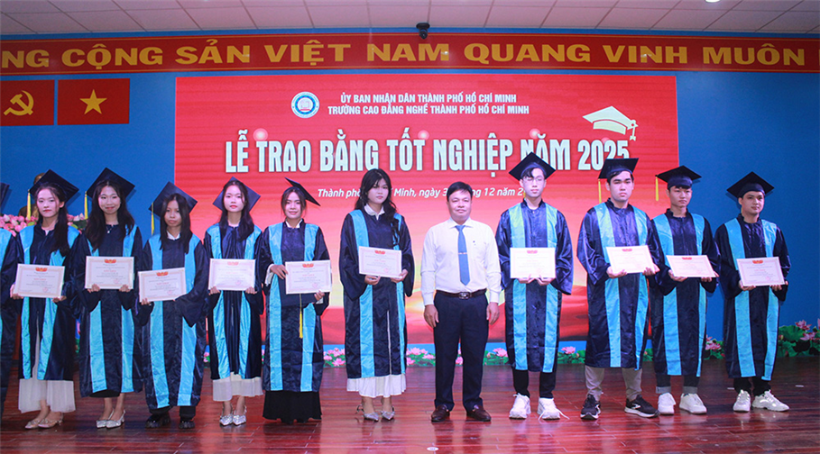 Sáng 30/12/2025, Trường Cao đẳng nghề TP.HCM long trọng tổ chức lễ trao bằng tốt nghiệp cho 748 học sinh các lớp trình độ Trung cấp khóa học 2022 - 2024, sinh viên trình độ Cao đẳng khóa học 2022 – 2025 và sinh viên trình độ Cao đẳng (liên thông) khóa học 2023 – 2025…