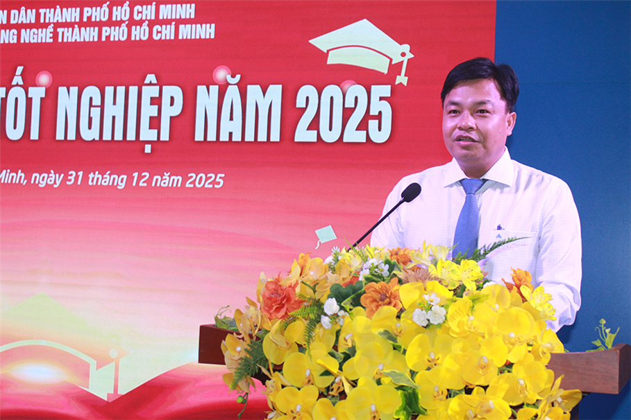 Phát biểu tại buổi lễ, thay mặt Đảng ủy, Ban Giám hiệu, tập thể viên chức, người lao động Phó Hiệu trưởng Trường Cao đẳng nghề TP.HCM ThS. Nguyễn Thọ Chân, khẳng định ngày hôm nay là dấu mốc quan trọng trong hành trình học tập và rèn luyện của các em. Tấm bằng tốt nghiệp mà các em nhận được không chỉ là sự ghi nhận về kiến thức và kỹ năng nghề, mà còn là kết quả của sự nỗ lực bền bỉ, tinh thần vượt khó và ý chí vươn lên trong suốt những năm tháng học tập tại Trường Cao đẳng Nghề TP. HCM.