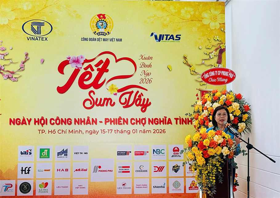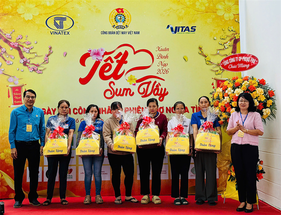 Ngày 15/1, Công đoàn Dệt May Việt Nam phối hợp với Tập đoàn Dệt May Việt Nam (Vinatex) và Hiệp hội Dệt May Việt Nam (Vitas) tổ chức chương trình “Tết sum vầy – Ngày hội công nhân – Phiên chợ nghĩa tình” (phiên thứ 2) tại Tổng Công ty CP Phong Phú, phường Tăng Nhơn Phú, TP Hồ Chí Minh.