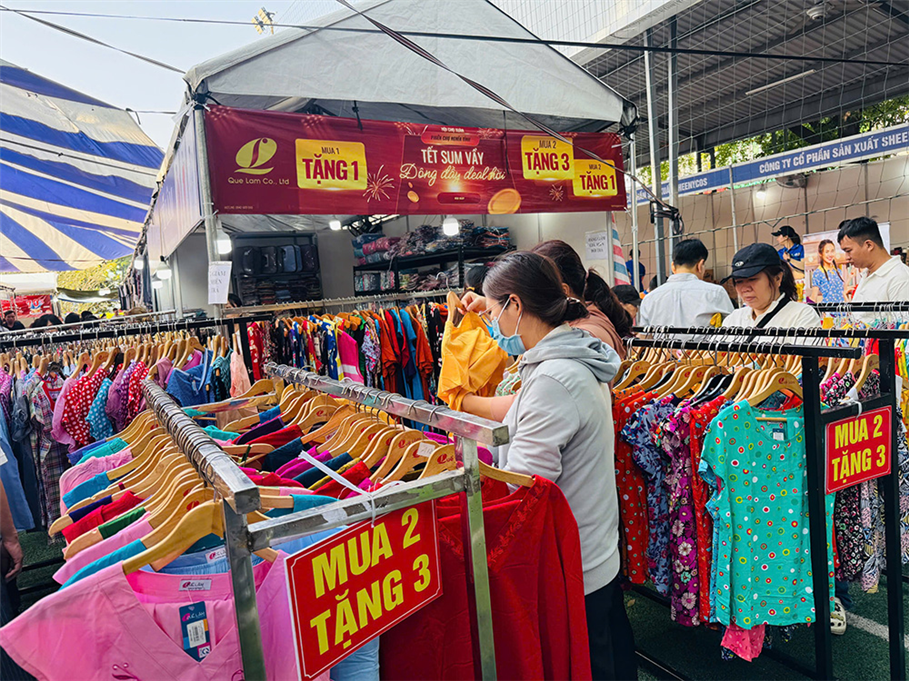 Chương trình thu hút 37 gian hàng của 28 đơn vị, giới thiệu nhiều mặt hàng thiết yếu phục vụ nhu cầu sinh hoạt dịp Tết như quần áo, chăn ga gối đệm, giày dép, mỹ phẩm, thực phẩm, hóa mỹ phẩm… Các sản phẩm đều đảm bảo chất lượng, được bán trợ giá từ 20% đến 70%, góp phần giúp công nhân, người lao động tiết kiệm chi tiêu, đón Tết đủ đầy hơn.