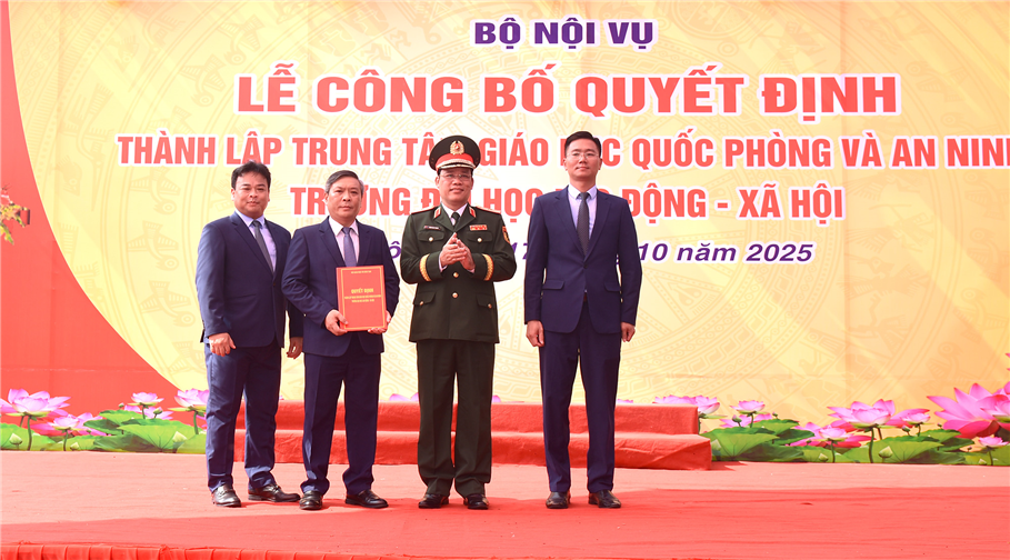 Ngày 22/4/2025, Bộ Giáo dục và Đào tạo ban hành Quyết định số 1091/QĐ-BGDĐT thành lập Trung tâm Giáo dục Quốc phòng và An ninh Trường Đại học Lao động - Xã hội. Tiếp đó, ngày 8/9/2025, Bộ Nội vụ tiếp tục ban hành Quyết định số 1003/QĐ-BNV quy định chức năng, nhiệm vụ và cơ cấu tổ chức của Trung tâm.