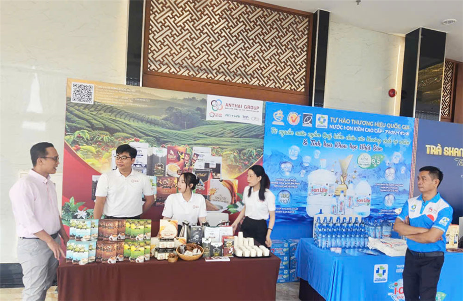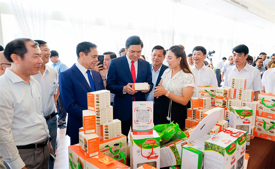 Lãnh đạo tỉnh Nghệ An và các đại biểu dự Hội nghị tham quan các gian hàng trừng bày sản phẩm tại Hội nghị